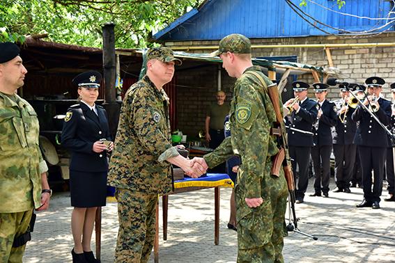За дорученням міністра внутрішніх справ України Арсена Авакова генерал вручив знак МВС – медаль «Захиснику Маріуполя» - та цінний подарунок командиру батальйону патрульної служби поліції особливого призначення «Івано-Франківськ» майору поліції Миколі Івоняку.