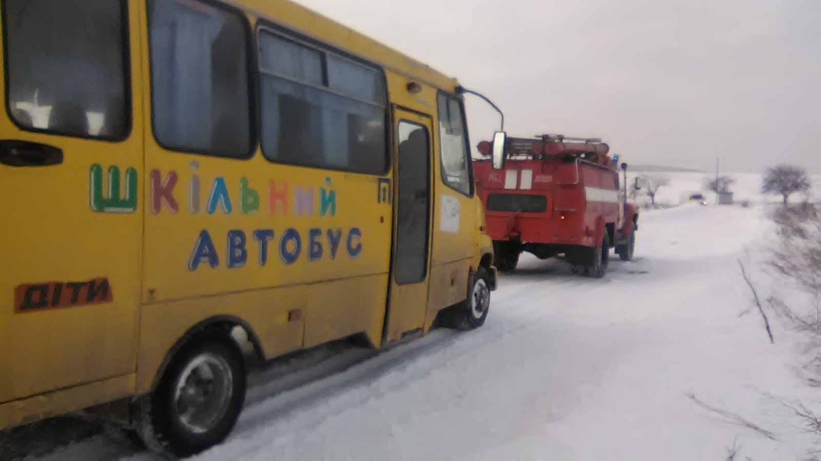 Рятувальники Державного пожежно-рятувального поста селища Обертин у кількості 3-ьох чоловік собового складу та 1-єї одиниці техніки за допомогою автоцистерни та буксирувального троса транспортували шкільний автобус на проїжджу частину дороги, де він самостійно продовжив рух.