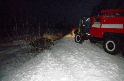 Працівники пожежно-рятувальної служби за допомогою буксирного троса витягнули автомобіль на дорогу.