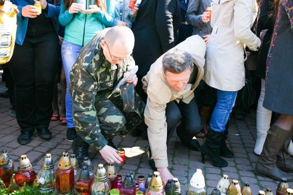 Разом з кількома сотнями прикарпатців військові поклали до могили мужнього студента запалені свічки, помолилися за упокій душ полеглих героїв.