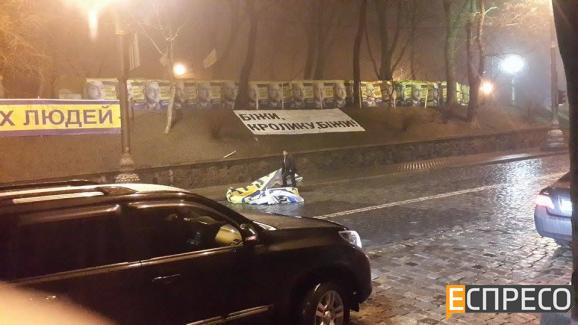 Прикарпатський нардеп під Кабміном зірвав провокаційний плакат про Яценюка