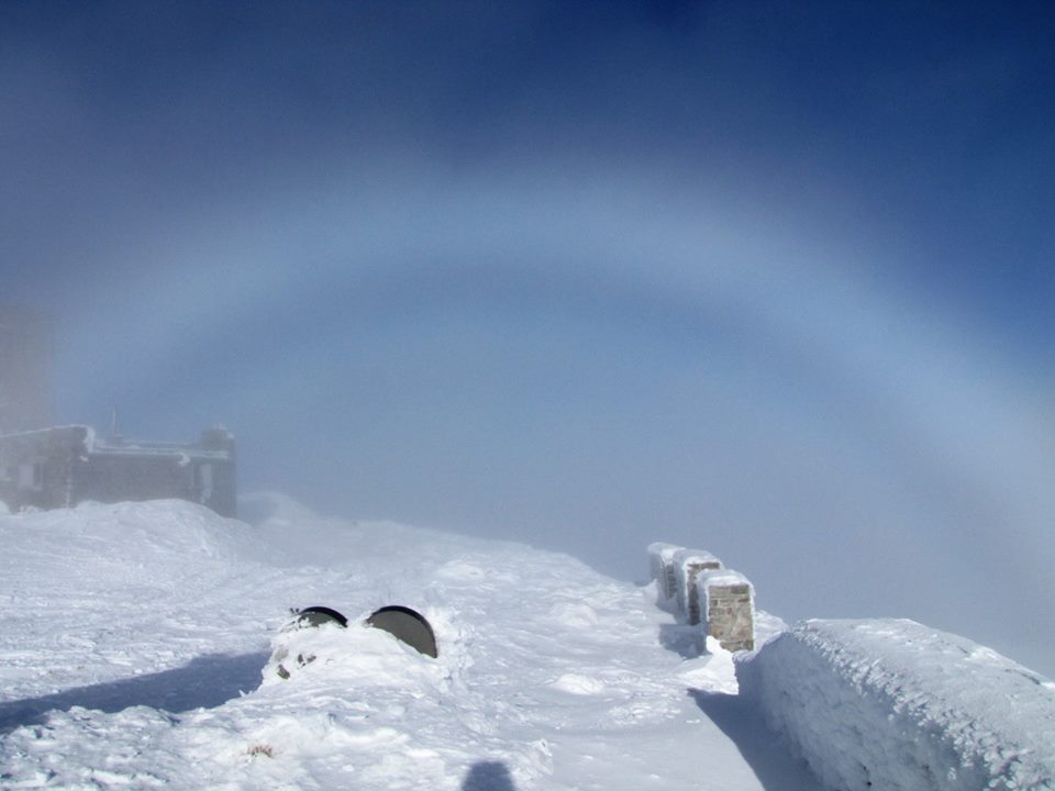 "Попіван. Брокненська примара - так називають атмосферне оптичне явище. Правда такої веселки взимку ще не доводилось бачити. Трішки запізно зробив кадр і кольори зникли",- йдеться в дописі.