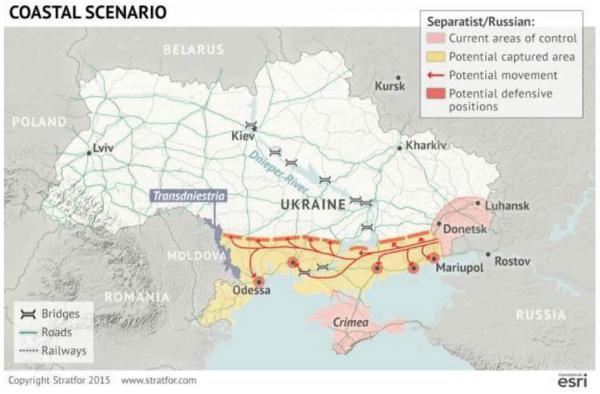 "У такому випадку ми припускаємо, що розробники плану наступу зроблять фронт достатньо широким для того, щоб забезпечити Крим водопостачанням з Дніпра. Виходить, що рубіж оборони буде проходити по річці. Це дозволить встановити сухопутний міст з півостровом, а також виключити подальшу ізоляцію Криму" , вважають в Stratfor.