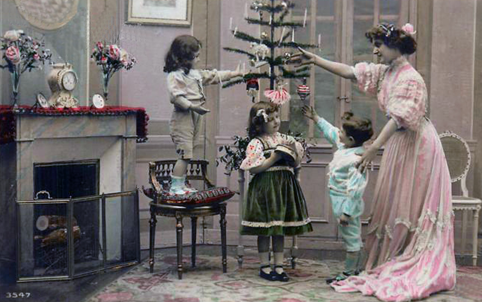 Як же виглядала прикрашена ялинка сто років тому? Ось як описувала святкове деревце місцева преса в 1907 році: «Поряд із яблуками на ній висять золочені горіхи, помаранчі, вже у власному кольорі, фініки, печиво. На ній можна побачити троянди з цукру – оздоби з великоднього торта, заховані ощадливою мамою, квіти, виготовлені з білої шкіри й пуп’янки тюльпанів з тонкого білого паперу…» Вершечок ялинки прикрашали зіркою, яка асоціювалася з вифлеємською зорею. Обов’язковими прикрасами були фігурки янголів, які мали опікуватися домом і всією родиною, і свічки – знак божественного світла, яке відганяло злих духів. Яблука символізували біблійний фрукт, а горіхи – добробут і силу. Паперові гірлянди були символом родинних зв’язків, а дзвоники – добрих новин.