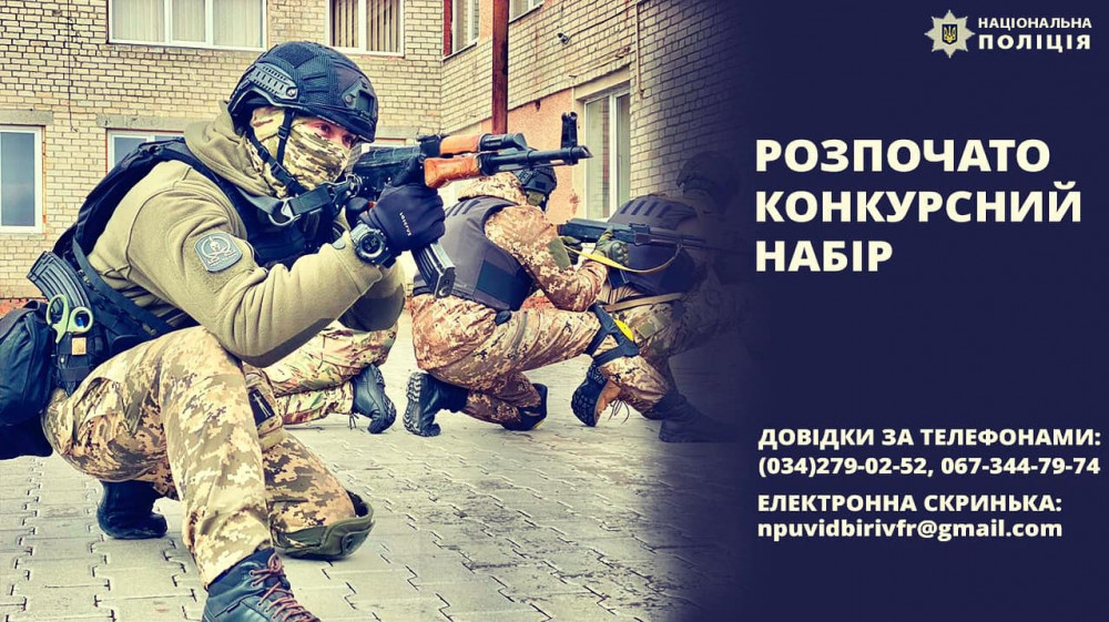 З 24 квітня 2023 року розпочато прийом документів на посаду поліцейського та інспектора підрозділу (полк, батальйон, рота) патрульної служби поліції особливого призначення (для укомплектування міжрегіонального територіального органу Національної поліції – Департаменту поліції особливого призначення Об’єднана штурмова бригада Національної поліції України «Лють») ГУНП в Івано-Франківській області.