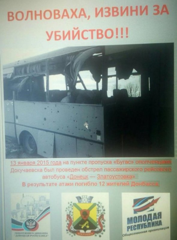 Розстріл автобуса під Волновахою: невідомі розвісили листівки з вибаченнями