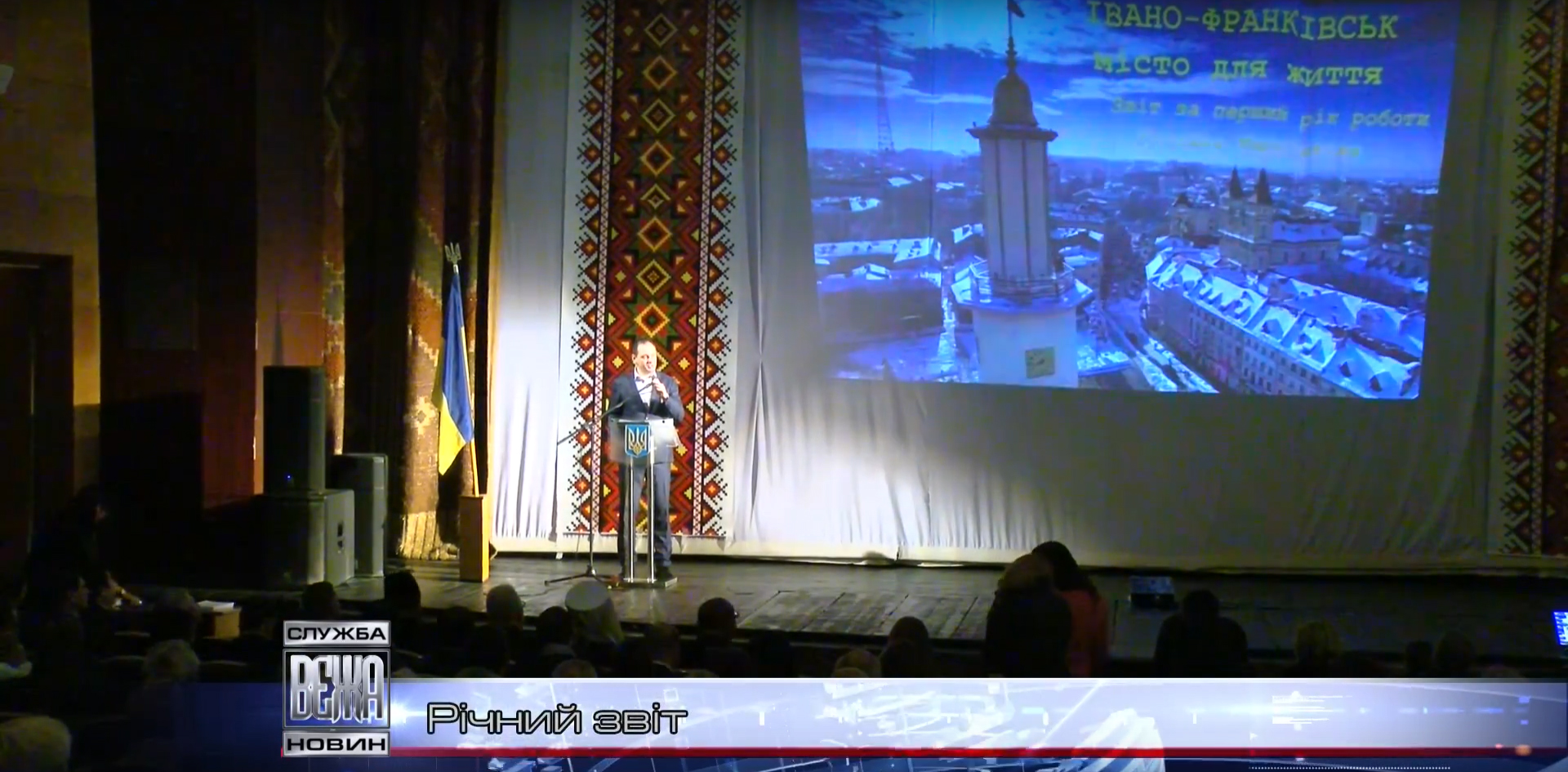 Про річну діяльність на посаді міського голови Івано-Франківська прозвітував Руслан Марцінків. Облмуздрамтеатр на кілька годин був переповнений представниками місцевої громади.