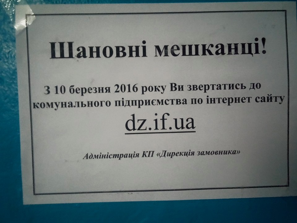 Тим часом працівники “Дирекції Замовника” вже розрекламували свій сайт у під’їздах житлового фонду – щоправда вийшло це не дуже орфографічно правильно.