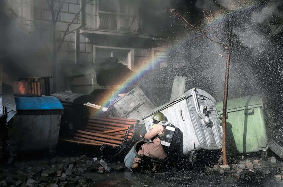 18 лютого, веселка крізь барикади. Фото porphyre.livejournal.com.
