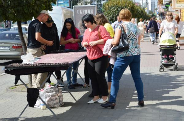 І якщо раніше торгували тільки жіночки із сусідніх сіл, що намагаються щонайшвидше продати свій крам, то зараз "винахідливі" бізнесмени продають ще й "золоті прикраси". Торговці пропонують перехожим придбати ланцюжки, каблучки та сережки.