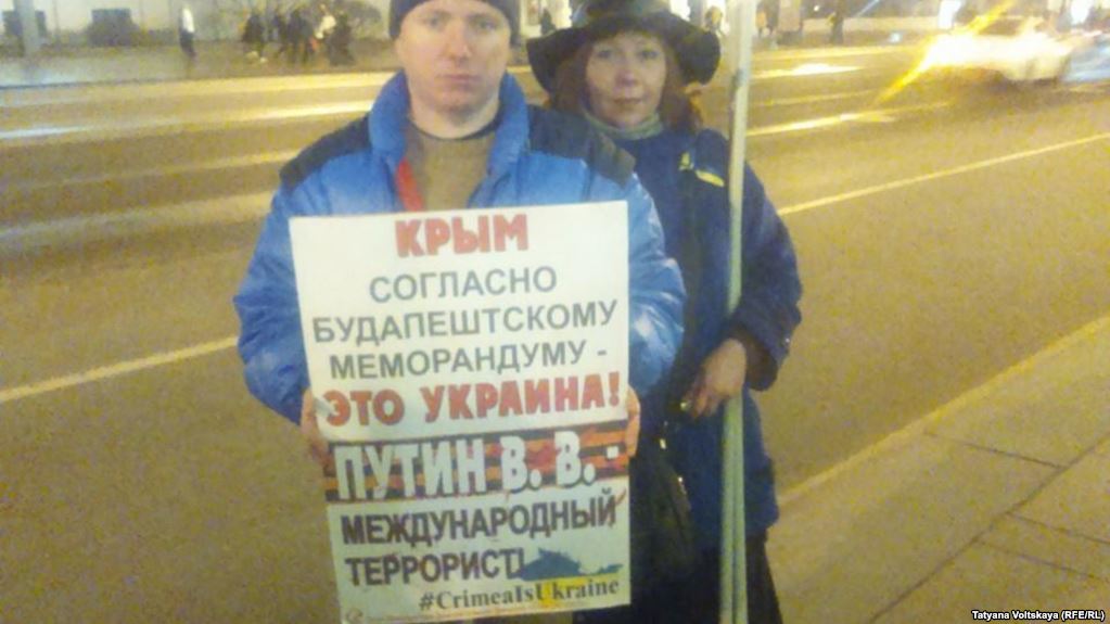 Серія одиночних пікетів відбулась на Невському проспекті в російському Санкт-Петербурзі в рамках міжнародної акції, присвяченої третій річниці анексії Криму.