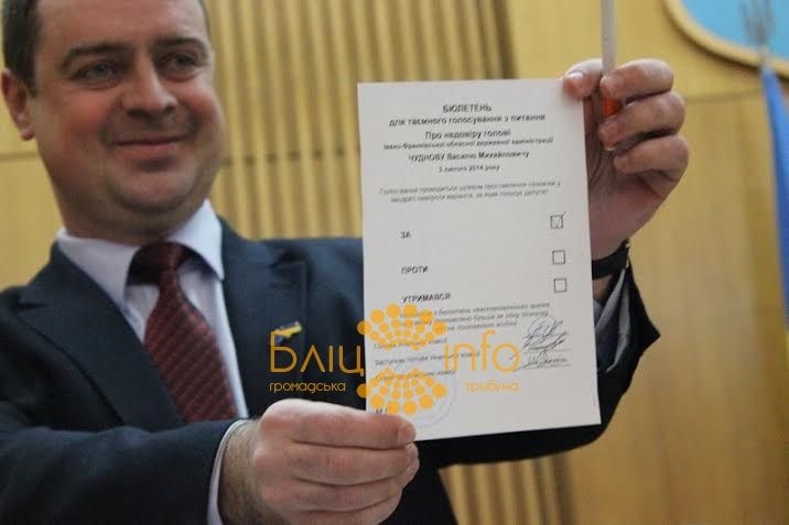 На цю процедуру виділено 30 хвилин. За цей час депутатам необхідно набрати мінімум 58 голосів. Відтак, щоб доцільність перебування на посаді Василя Чуднова розглянув Президент, потрібно набрати 2/3 від складу ради.