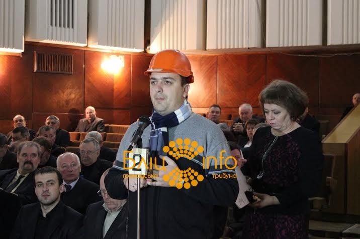 Натомість депутат облради Василь Попович в оранжевій касці звернувся до франківців.