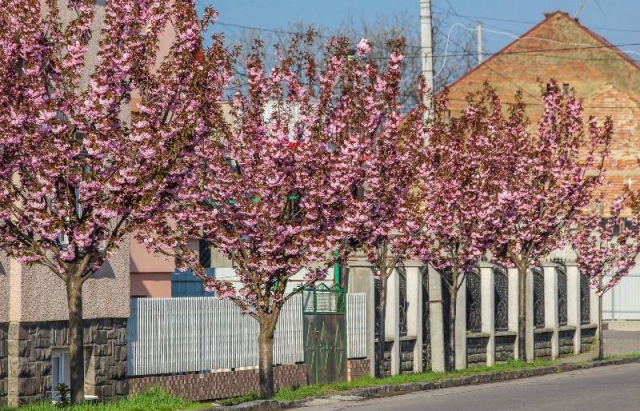 Найдовша алея сакур на Закарпатті, яка знаходиться на вулиці Ужгородській, що в Мукачеві вже квітне.