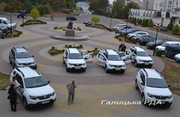 Перед початком чергової сесії районної ради у Галичі, 27 вересня на площі перед адмінбудинком депутатам представили нові службові автомобілі Renault Duster.