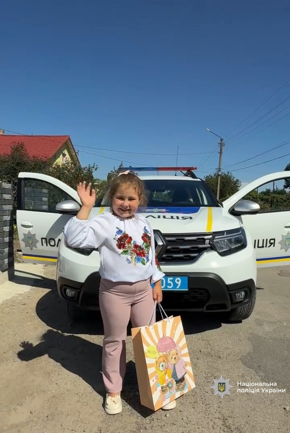 Напередодні поліцейські допомогли дівчинці підготуватися до навчального року. А вранці 1 вересня вони відвезли її службовим автомобілем до школи, подарували рюкзак і все необхідне канцелярське приладдя.