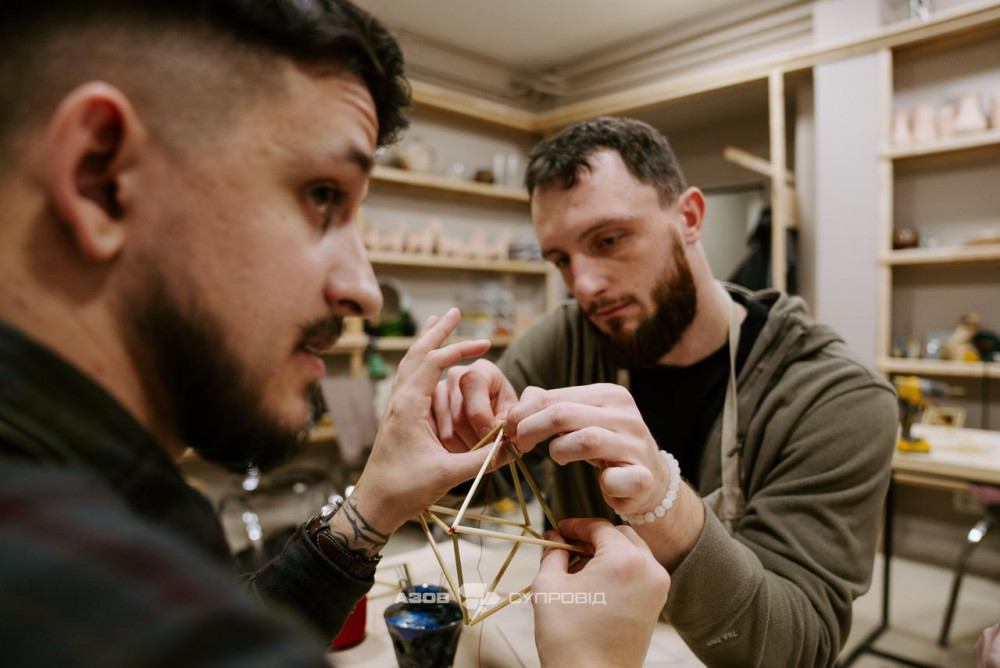 Саме тому нещодавно Служба супроводу Азов організувала відвідування творчої майстерні ЯР для поранених і звільнених з полону бійців. Разом вони зробили оберіг для власного житла — різдвяного павука.