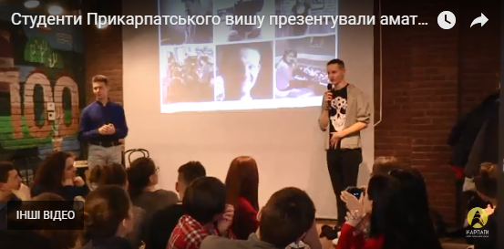 Аматорський кліп презентували студенти Прикарпатського національного університету імені Василя Стефаника вчора в Івано-Франківську, в громадському ресторані Urban Space 100. Відео: ТРК Карпати