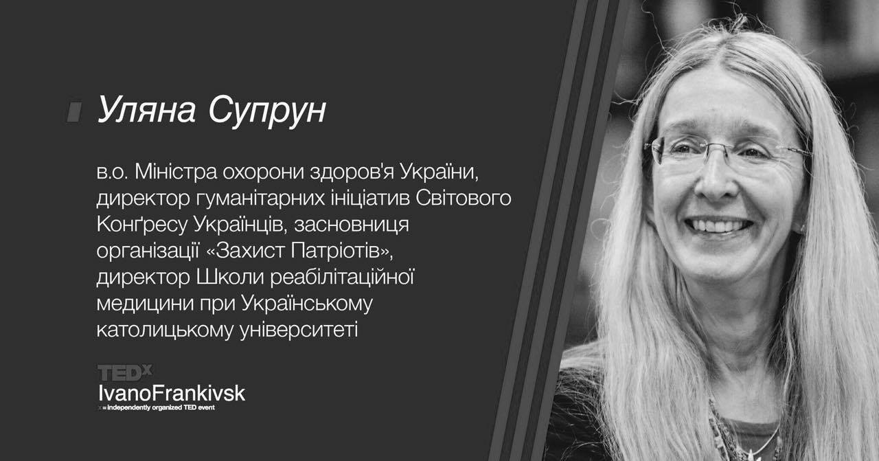 "Нам дуже прикро повідомляти вам, що один із наших спікерів не зміг прибути на конференцію TEDxIvanoFrankivsk сьогодні. В.о. Міністра охорони здоров’я Уляна Супрун скасувала візит до Івано-Франківська через затримку із прийняттям законопроекту щодо реформи медицини. Тому вона змушена залишатися у Києві. Доктор Уляна Супрун просить вибачення в учасників конференції, які дуже хотіли побачити і почути її виступ. Однак, вона пообіцяла незабаром відвідати Івано-Франківськ і зустрітися з вами", - зазначають у дописі.