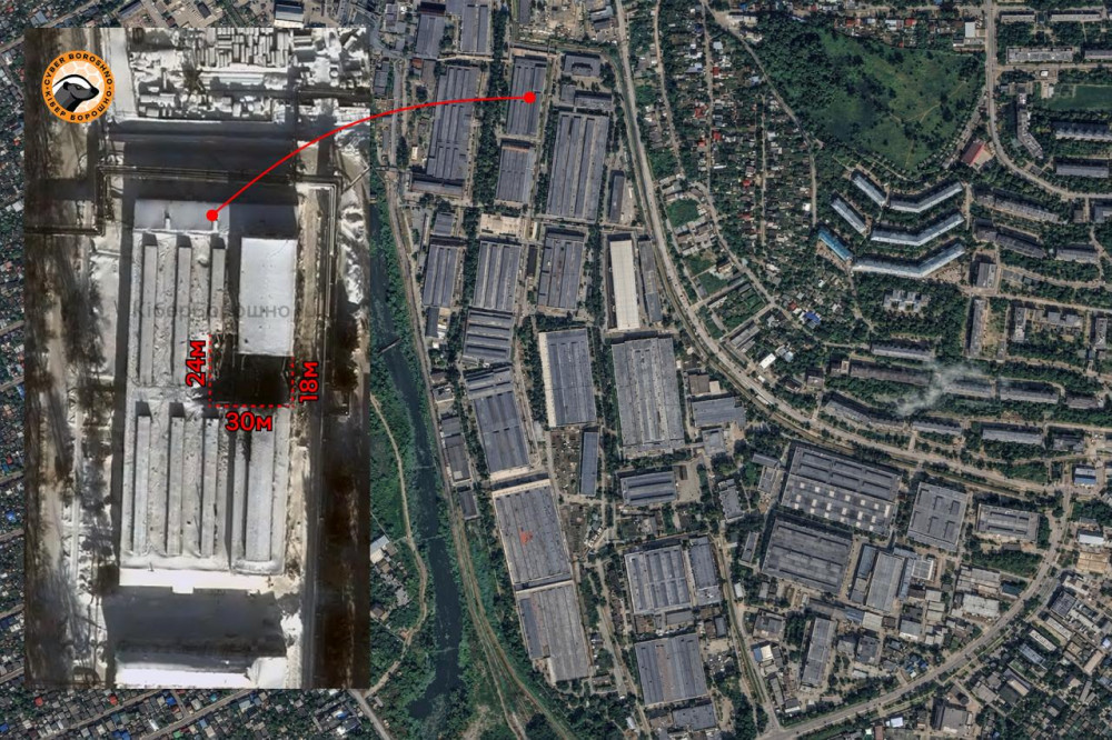Внаслідок атаки у покрівлі корпусу №19 зафіксовано величезний пролом орієнтовними розмірами 30 × 24 метри, повідомляє OSINT-проект КіберБорошно.