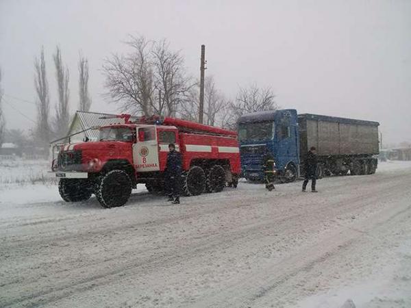 Силами ДСНС у Кіровоградській, Миколаївській та Одеській областях вивільнені з снігових заметів автотранспортні засоби доправлялись до стаціонарних пунктів обігріву (автозаправочні комплекси, магазини, тощо) для відстою та обігріву людей.
