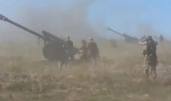 В мережі з’явилося відео, як терористи вчаться користуватися гаубицями, які їм передали з Росії.