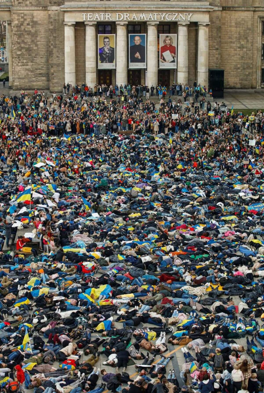 Тисячі людей у Варшаві лягли на землю, демонструючи вбитих окупантами українців