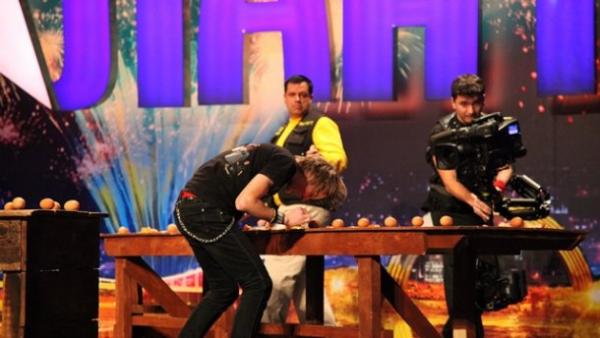 Григорій Двуличанский з Житомира вирішив, що це далеко не повний перелік, що можна робити головою. І вирішив спробувати бити нею... яйця! На щастя – курячі. Спочатку Гриша тренувався вдома на кухні, але незабаром довелося це захоплююче заняття припинити – мамі воно не сподобалося. "Не пропадати ж такій унікальній голові!" – в розпачі подумав Гриша і подав заявку до Національного Реєстру Рекордів. Експертам, на відміну від мами, яєць для рекорду було не шкода. Тому спробу встановити рекорд з яйцебиття головою включили в програму шоу "Україна має талант-5".