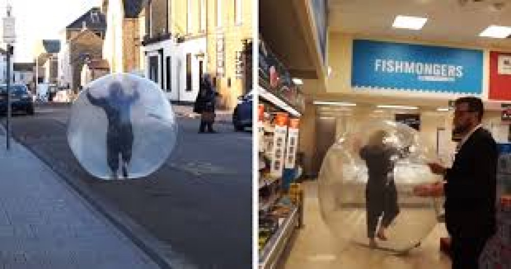 Британка з Кенту прийшла до крамниці у великій кулі, щоб тримати рекомендовану дистанцію від інших покупців.