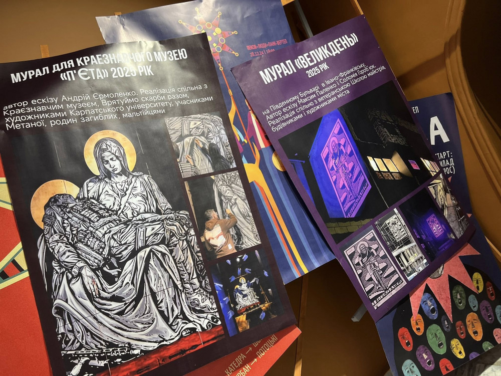 В Івано-Франківському краєзнавчому музеї презентували постери п’яти нових християнських муралів, які зʼявились у місті після 2024 року.
