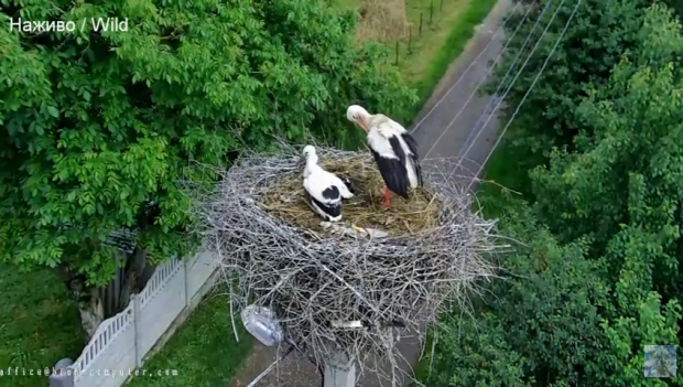 «Пара лелек роками гніздиться на одному і тому ж місці, тому ми встановили камеру над старим гніздом у с. Тязів, що на Івано-Франківщині. Гніздо зроблене з гілок дерев на лінії ЛЕП. Важить воно до 500 кг і досягає 2 метрів у діаметрі. З роками гніздо надбудовується і збільшується», – йдеться в описі до відео.