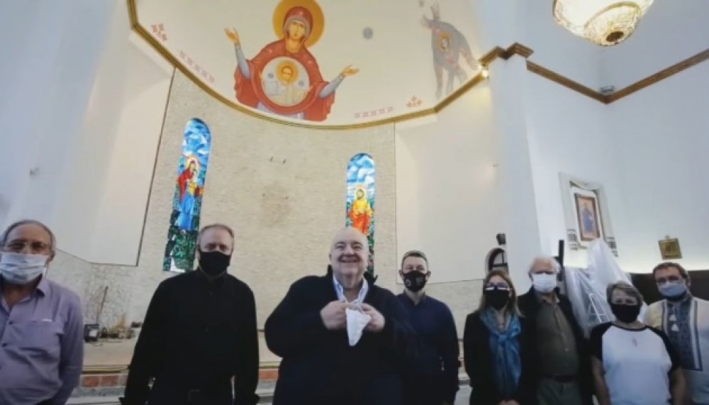 Мер бразильського міста Куритиба Рафаель Грека відвідав українську церкву Носса Сеньора Аучільадора, іконостас якої розписує український художник Святослав Владика.