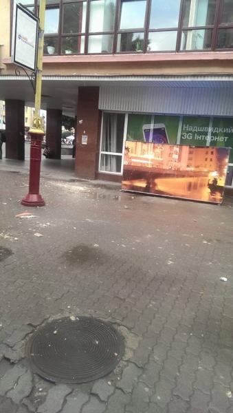У центрі Франківська через обвал карнизу ледь не постраждала жінка