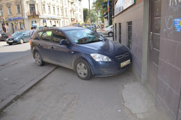 Водій автомобіля-"пиріжка", виїжджаючи з «кишені» поблизу «молочного кафе», не впорався з керування і в’їхав у легкову машину марки «KIA», що була запаркована на іншій стороні вулиці.