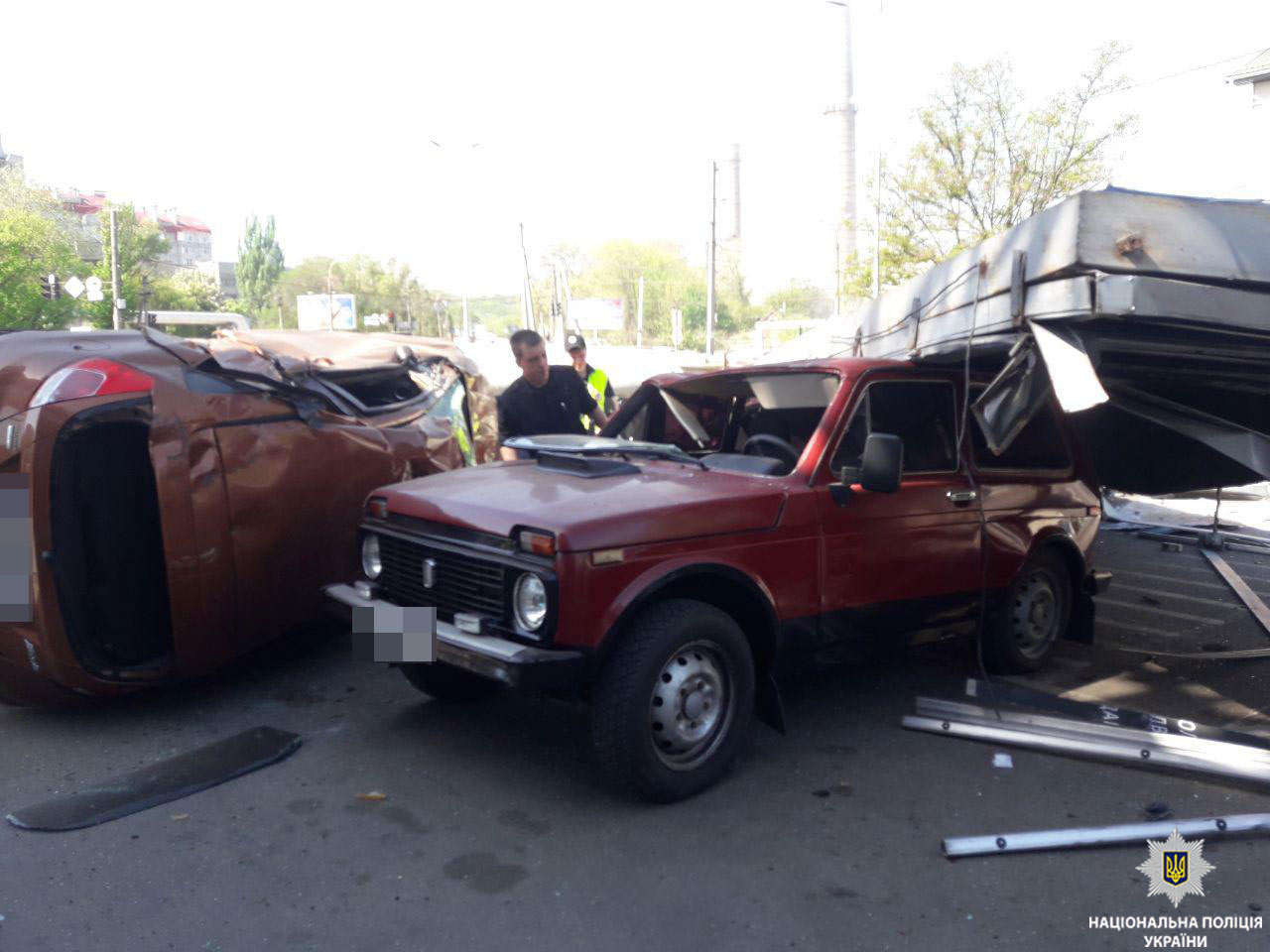 ДТП сталася 4 травня близько 10-ї ранку на перехресті вул. Космічної та Кодацький узвіз. Вантажний автомобіль "DAF" рухався вниз по вул. Космічній. Попередньо встановлено, що у вантажівки відмовили гальма і вона виїхала на стоянку біля супермаркету. В результаті пригоди загинув 1 чоловік, ще 3 людини отримали тілесні ушкодження. Внаслідок зіткнення було пошкоджено понад 10 автомобілів.