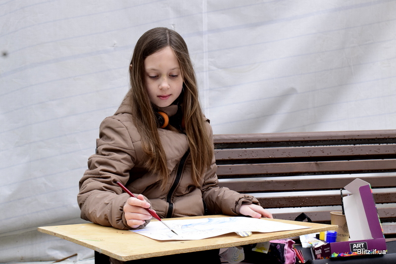 Так, на площі Міцкевича кілька десятків дітей різного віку малювали для воїнів. Для юних франківців, які створювали ці малюнки, - це спосіб висловити свою підтримку і подяку воїнам, які захищають нашу країну. У своїх роботах діти зображують рідний Франківськ, мрії про мирне небо та перемогу України.