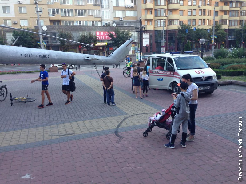 У нього рвана рана ноги, на бруківці лишилася кров.