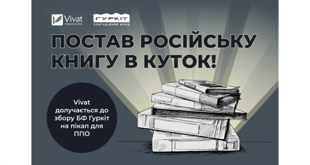 Видавництво Vivat долучилося до збору благодійного фонду "Гуркіт" - книжки російською збирають на перероблення, а вторговані гроші спрямують на збір на пікап для ППО.