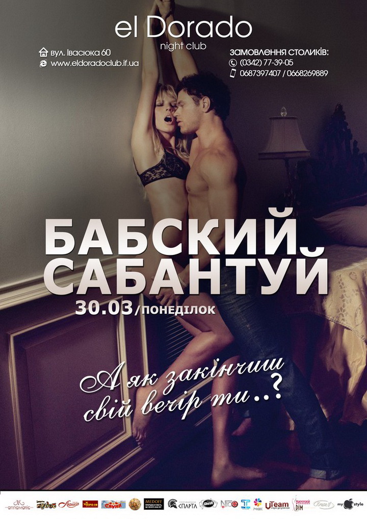 Вечірка, яку рекламує заклад, називається “Бабский сабантуй”, а на фото – дівчина без спідньої білизни, пише Репортер.