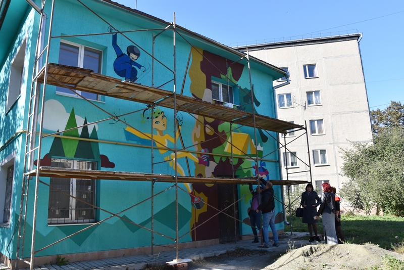 У дитячому клубі "Глобус" завершують розпис фасаду та внутрішні підготовчі роботи.