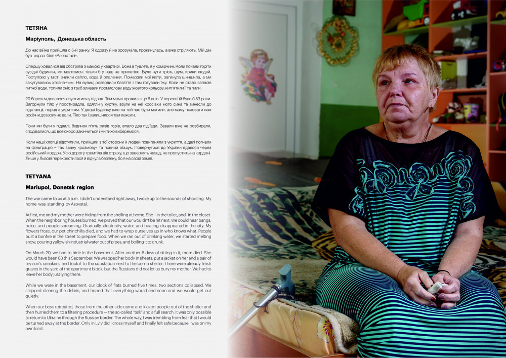 За словами керівниці “Молодої Просвіти” Євгенії Бардяк, центральною темою у створених продуктах є українці, яким довелося через ракетні обстріли та бойові дії, тікати зі своїх населених пунктів: “Через виставку портретів, до якої увійшло 22 історії, ми говоримо про людей та їхні втрати. Переважна частина з них не має зараз відчуття безпеки навіть на більш спокійних територіях. Розповіді дуже різні, але у сукупності - це образ ледь не кожного третього українця чи українки, які постраждали від військової агресії”.