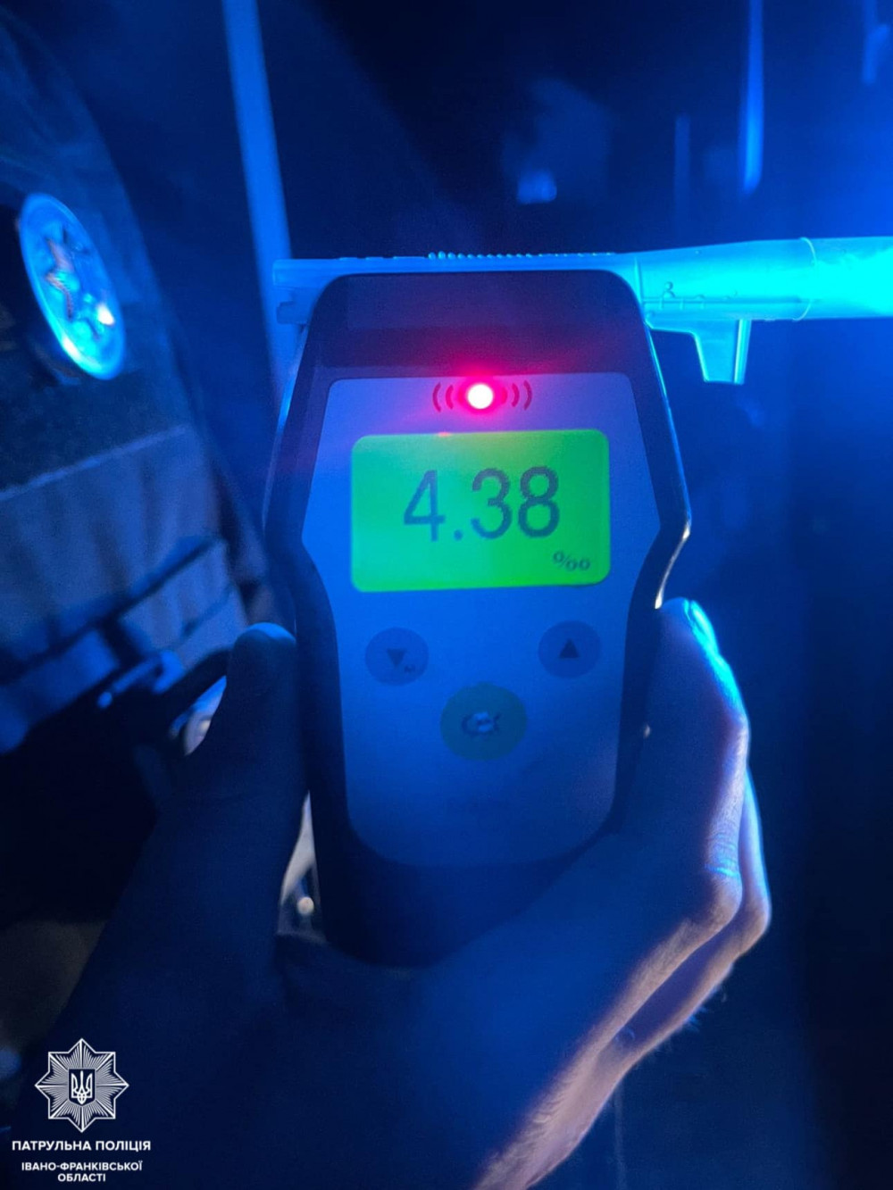 Спілкуючись з 36-річним водієм Nissan, патрульні виявили в нього ознаки алкогольного сп’яніння. Чоловік погодився пройти перевірку на стан сп'яніння. Результат огляду — 4.38 проміле алкоголю в організмі!