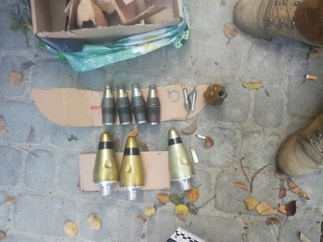 Слідчо-оперативна група, яка виїхала на місце для перевірки повідомлення, виявила поліетиленовий пакет з картонною коробкою всередині, де знаходилося три підривачі для 122 міліметрових реактивних снарядів до систем залпового вогню «Град», чотири підривачі до мінометних мін та ручна граната «Ф-1».