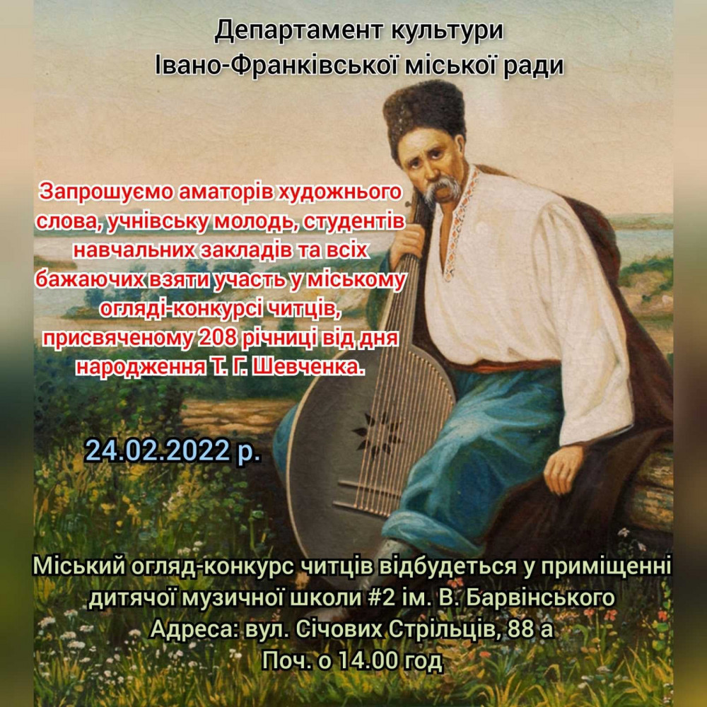 До 208-річниці з дня народження Тараса Шевченка департамент культури організовує огляд-конкурс читців.
