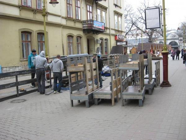 Сьогодні, 8 квітня, в Івано-Франківську почали встановлювати перші літні торгові майданчики.