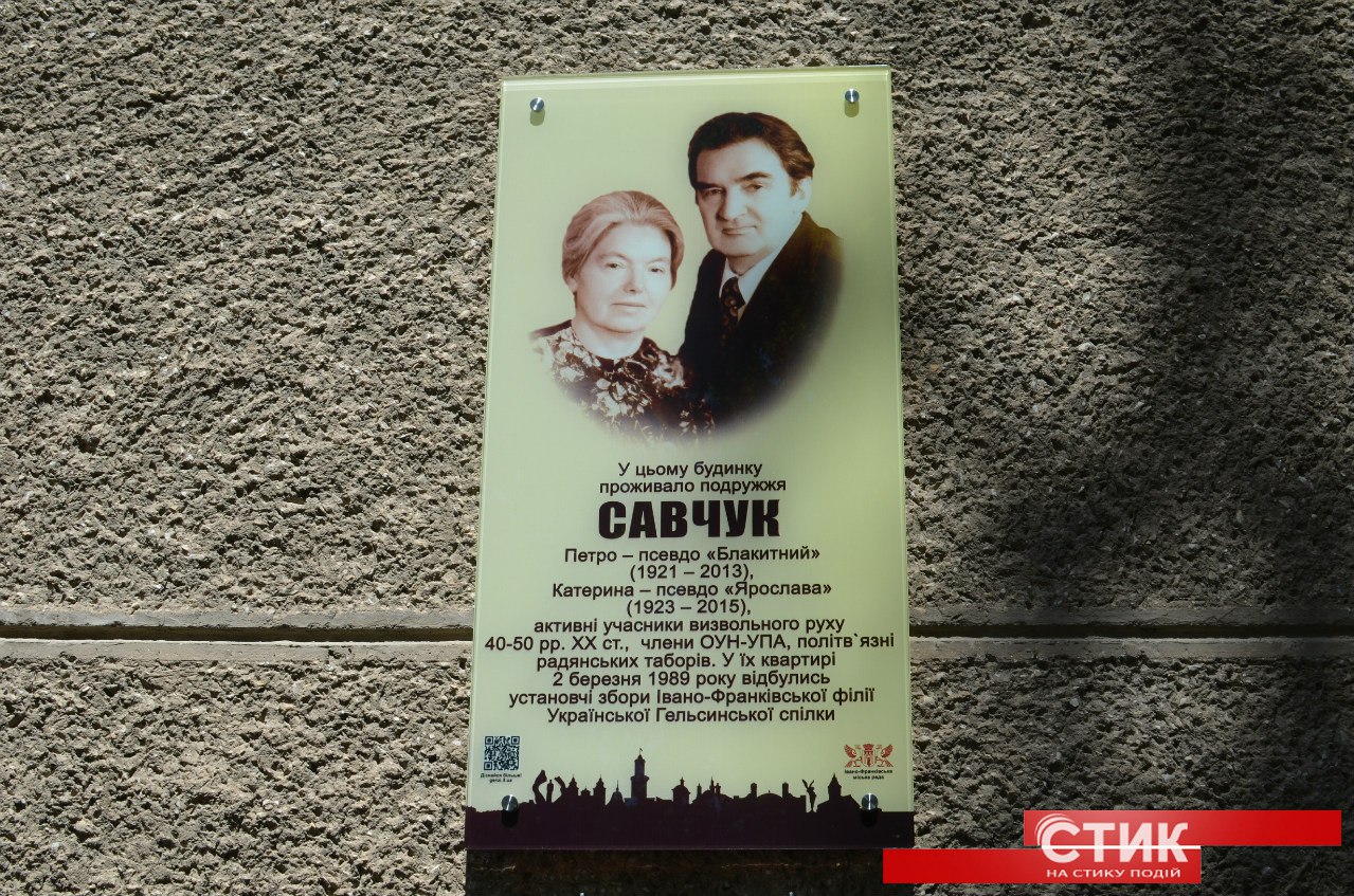 Нещодавно в Івано-Франківську відкрили анотаційну дошку подружжю репресованих політв'язнів Савчуків.