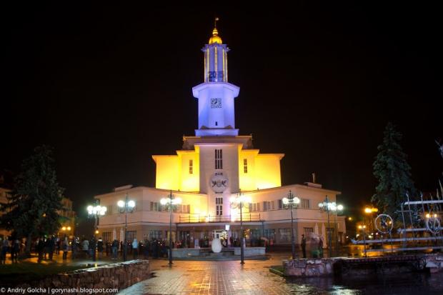 Субота, сьома вечора, калюжі відбивають світло вуличних ліхтарів і ратуші. Тиша… Незважаючи на дощ і не зовсім типову холоднечу кінця березня, близько 80 осіб «оточили» міську ратушу. Почалось все з репетиції головного дійства, яке було заплановано на 20:30. Свічки, дощовики та парасолі, хороший настрій та дружня атмосфера передували старту акції. І, коли врешті головну споруду міста таки знеструмили, молодь зі свічками в руках почала формувати різноманітні фігури під акомпанемент акустичної музики. Так, віртуозна гра на класичній гітарі та приємний голос додали дрібку «атмосферности» до івано-франківської «Години Землі».
