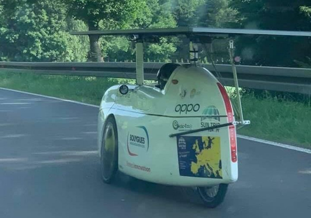 Логотипи на корпусі вказують, що водій, ймовірно, бере участь у міжнародному марафоні на електровелосипедах Sun Trip. Стартував марафон 16 червня у Брюселі. Його протяжність 10 000 кілометрів.