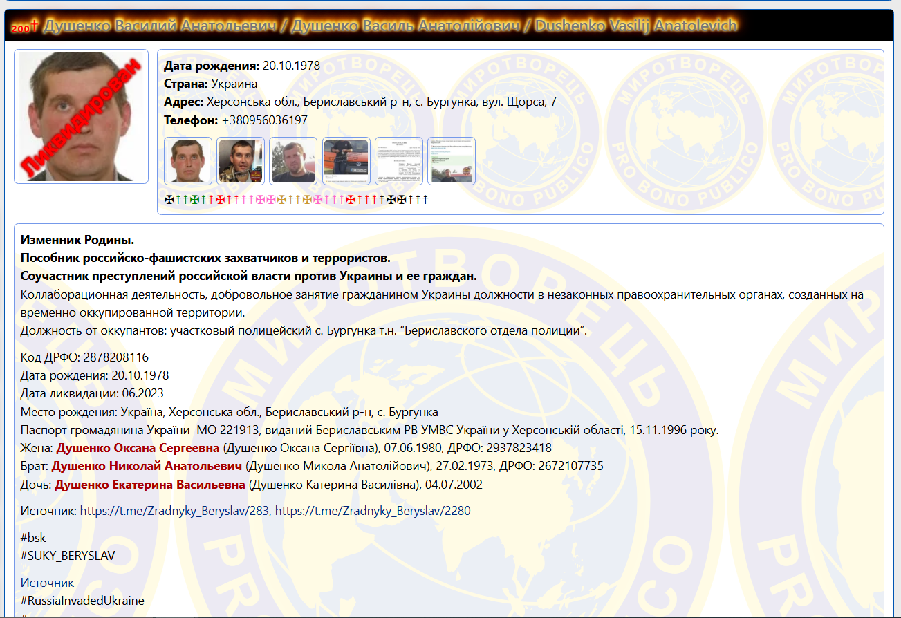 Втім, у базі центру "Миротворець" Василь Душенко зазначений як "ліквідований".