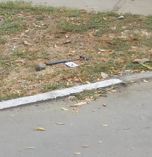 Очевидці розповіли міліціонерам, що з під'їзду вибігли двоє невідомих з пакетом в руках. У сусідньому дворі міліціонери наздогнали двох підозрілих чоловіків. Один з них вдарив ножем міліціонера.Ніж не розкрився і зловмисник почав тікати у бік приватного сектору. Одному вдалося сховатися, а другий схопив перехожу і приставив до її голови пістолет. Побачивши правоохоронця, зловмисник направив пістолет на нього.